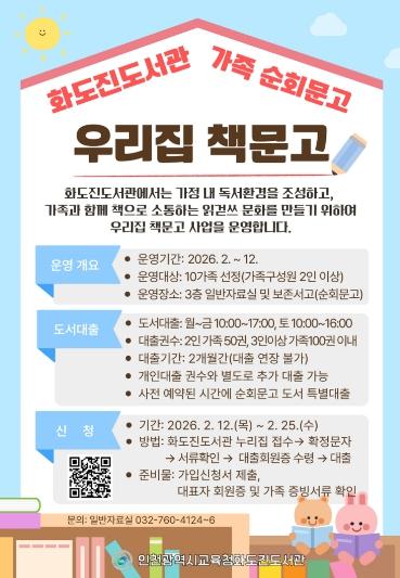 화도진도서관 관계자는“가족이 함께 책을 읽고 소통하는 독서 환경을 만들고자 한다”며 “앞으로도 시민의 일상에 책이 스며들도록 다양한 서비스를 확대하겠다”고 밝혔다.