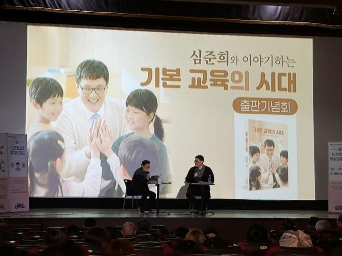 [비즈인천] 심준희 인천교육감출마예정자(인천청소년기본소득포럼 대표) 지난 21일 오후 인천 동구 화도진로 31에 위치한 인천미림극장에서 저서 '기본 교육의 시대 – 아이를 혼자 두지 않는 사회의 조건' 출판기념 북토크를 개최했다.