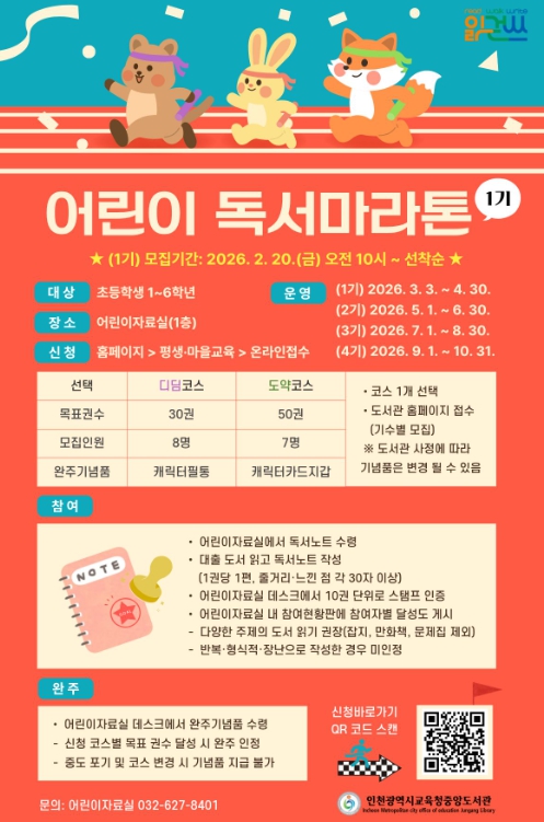 • 인천광역시교육청중앙도서관, ‘어린이 독서마라톤’ 1기 모집